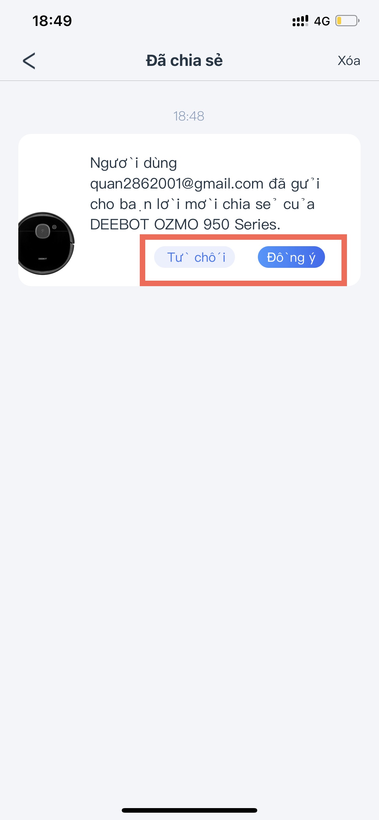 Lưu ý rằng, việc chia sẻ nãy giúp cho người dùng được cấp quyền sử dụng được những tính năng cơ bản, giúp cho bạn dễ kiểm soát hơn robot hơn. Tuy nhiên, nếu bạn muốn người thân sử dụng toàn bộ những chức năng thì bạn nên chia sẻ tài khoản của mình với người thân trong gia đình.