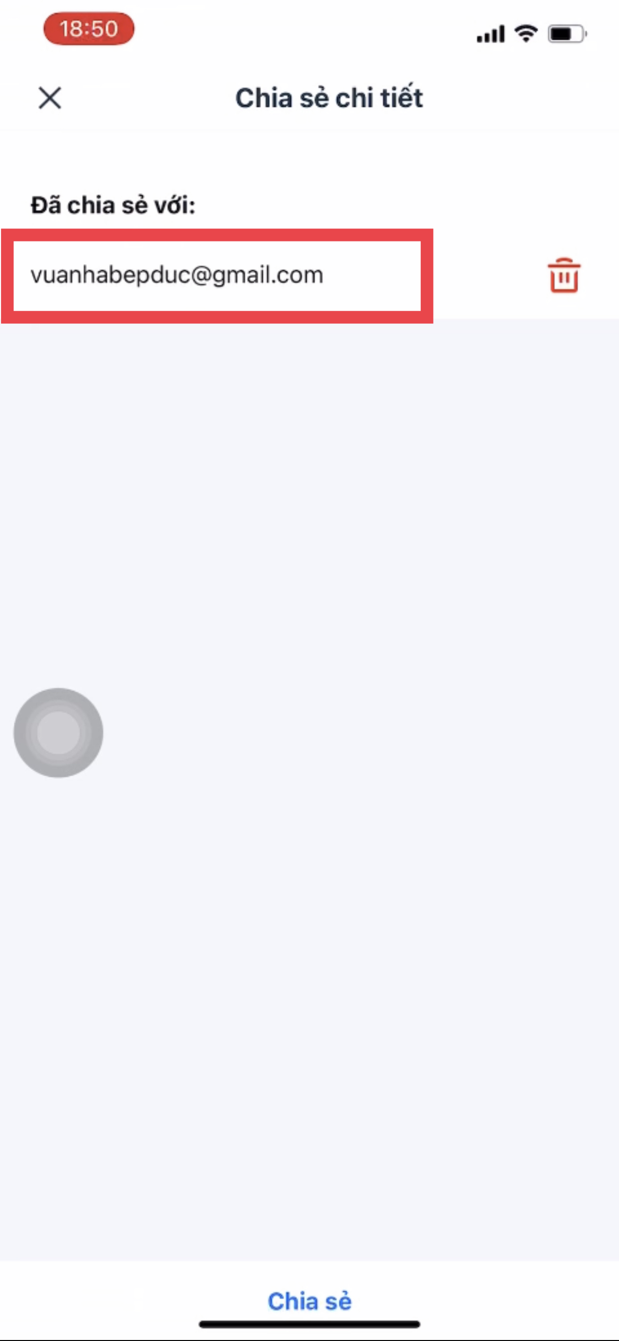 Để hiện tính năng chia sẻ thiết bị, bạn ấn vào khu vực dấu tròn đỏ